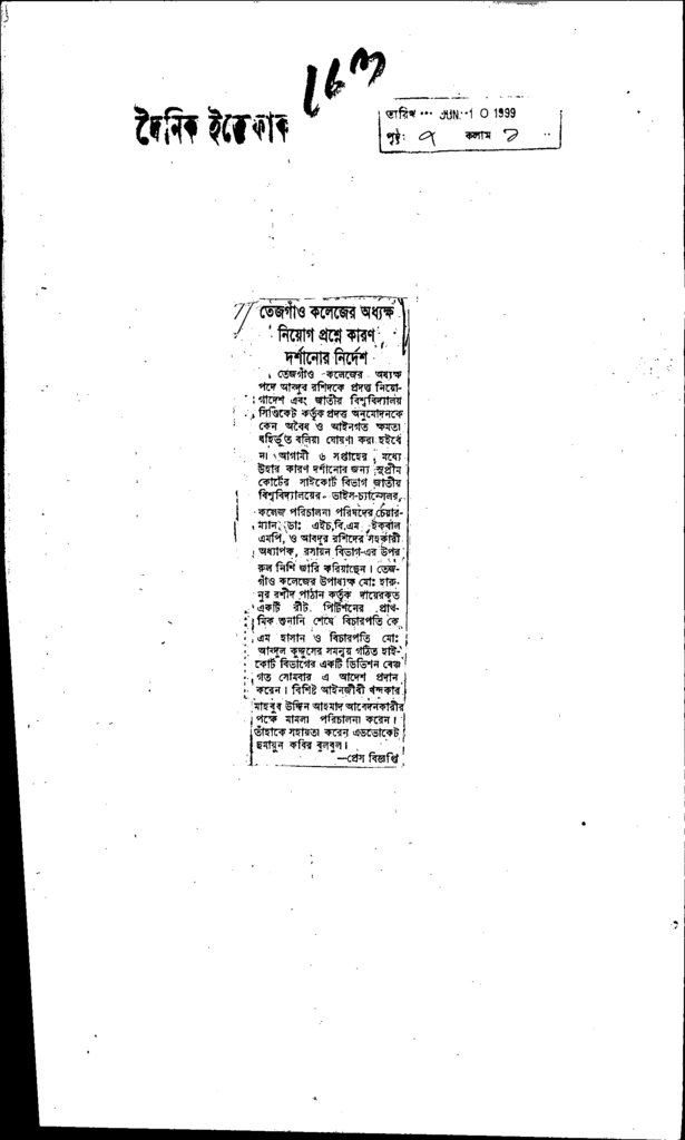 তেজগাঁও কলেজের অধ্যক্ষ নিয়োগ প্রশ্নে কারণ দর্শানোর নির্দেশ Published on Newspaper দৈনিক ইত্তেফাক Category Professional Education Professional Education Others Download