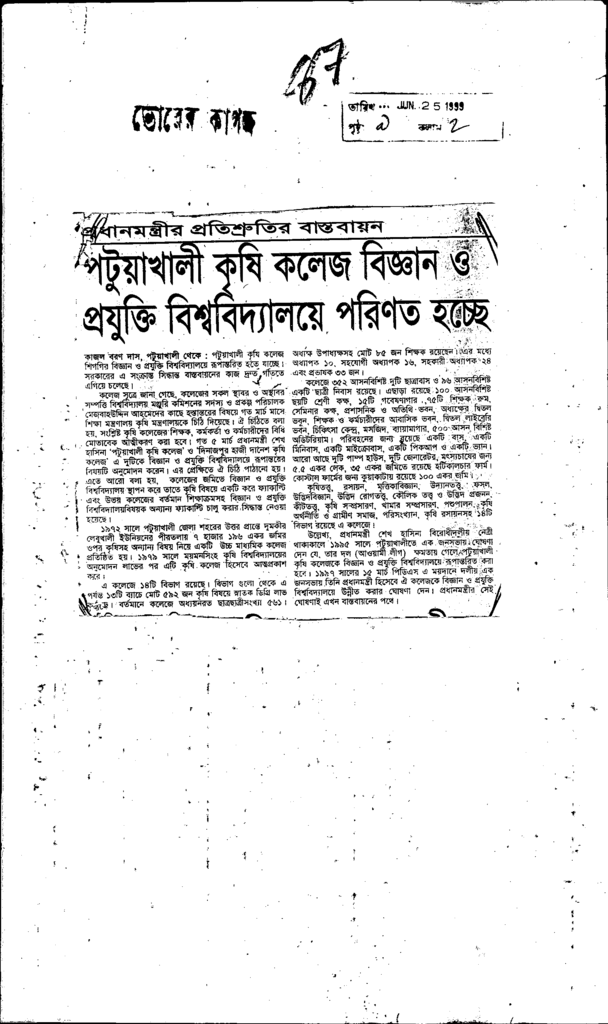 পটুয়াখালী কৃষি কলেজ বিজ্ঞান ও প্রযুক্তি বিশ্ববিদ্যালয়ে পরিণত হচ্ছে