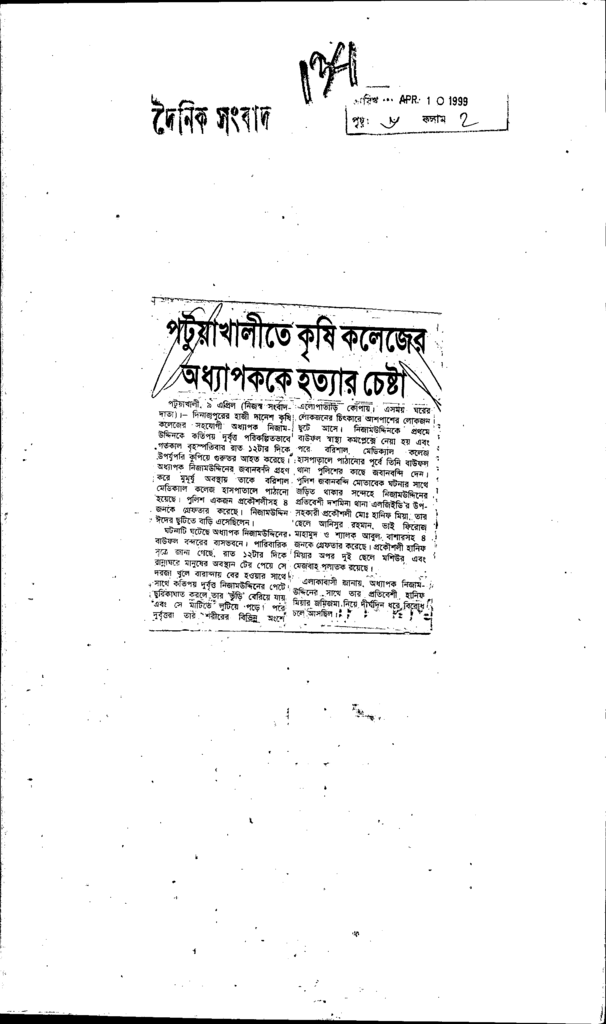 পটুয়াখালীতে কৃষি কলেজের অধ্যাপককে হত্যার চেষ্টা Published on Newspaper দৈনিক সংবাদ Category Professional Education Professional Education Others Download