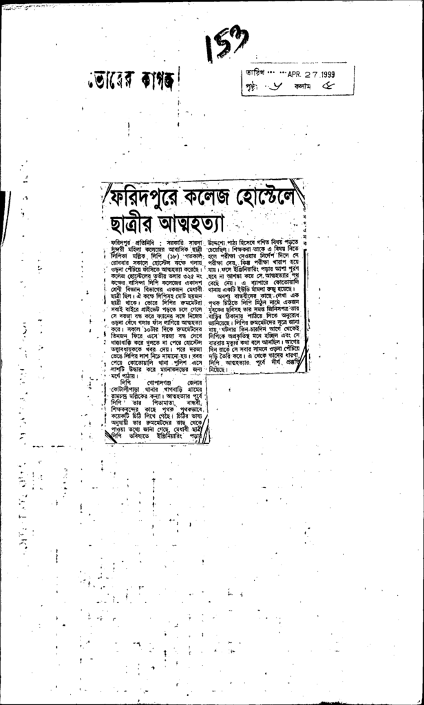 ফরিদপুরে কলেজ হোস্টেলে ছাত্রীর আত্মহত্যা Published on Newspaper দৈনিক ভোরের কাগজ Category Professional Education Professional Education Others Download