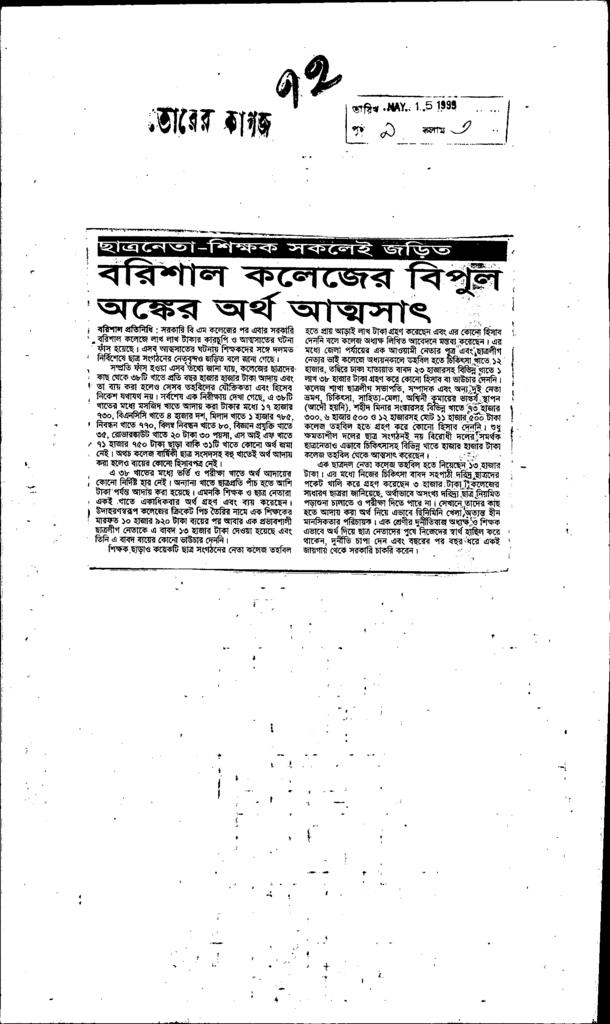 বরিশাল কলেজের বিপুল অঙ্কের অর্থ আত্মসাৎ Published on Newspaper দৈনিক ভোরের কাগজ Category Professional Education Professional Education Others Download