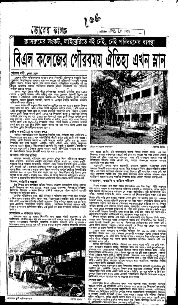 বিএল কলেজের গৌরবময় ঐতিহ্য এখন ম্লান Published on Newspaper দৈনিক ভোরের কাগজ Category Professional Education Professional Education Others Download