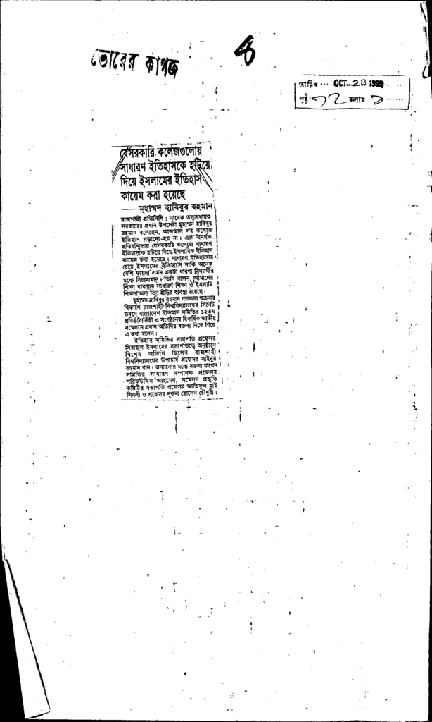 বেসরকারী কলেজগুলোয় সাধারণ ইতিহাসকে হটিয়ে দিয়ে ইসলামের ইতিহাস কায়েম করা হয়েছে Published on Newspaper দৈনিক ভোরের কাগজ Category Professional Education Professional Education Others Download