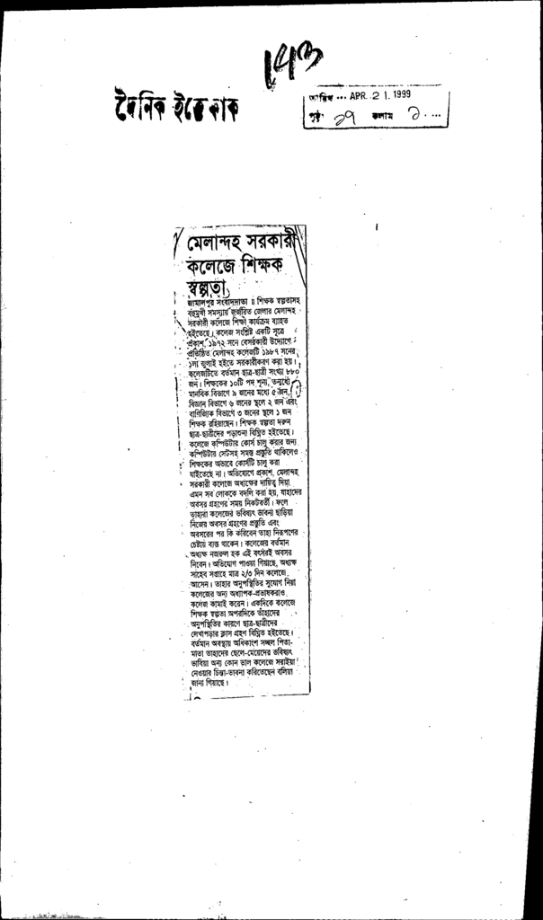 মেলান্দহ সরকারী কলেজে শিক্ষক স্বল্পতা Published on Newspaper দৈনিক ইত্তেফাক Category Professional Education Professional Education Others Download