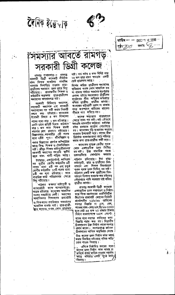 সমস্যার আবর্তে রামগড় সরকারী ডিগ্রী কলেজ Published on Newspaper দৈনিক ইত্তেফাক Category Professional Education Professional Education Others Download