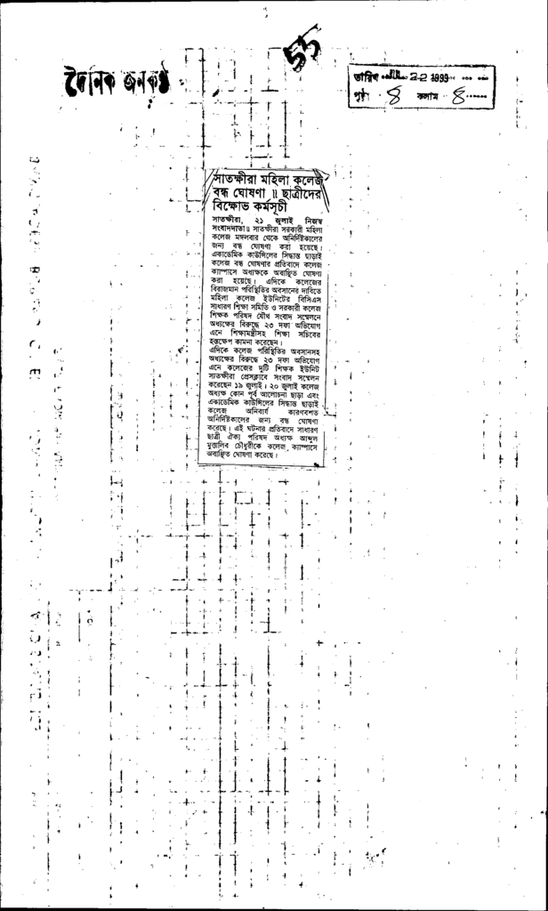 সাতক্ষীরা মহিলা কলেজ বন্ধ ঘোষণা ।। ছাত্রীদের বিক্ষোভ কর্মসূচী Published on Newspaper দৈনিক জনকণ্ঠ Category Professional Education Professional Education Others Download