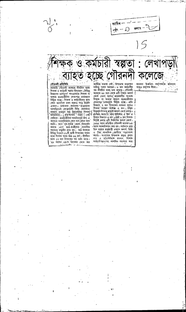 শিক্ষক ও কর্মচারী স্বল্পতা: লেখাপড়া ব্যাহত হচ্ছে গৌরনদী কলেজে Published on Newspaper দৈনিক যুগান্তর Category Professional Education Professional Education Others Download