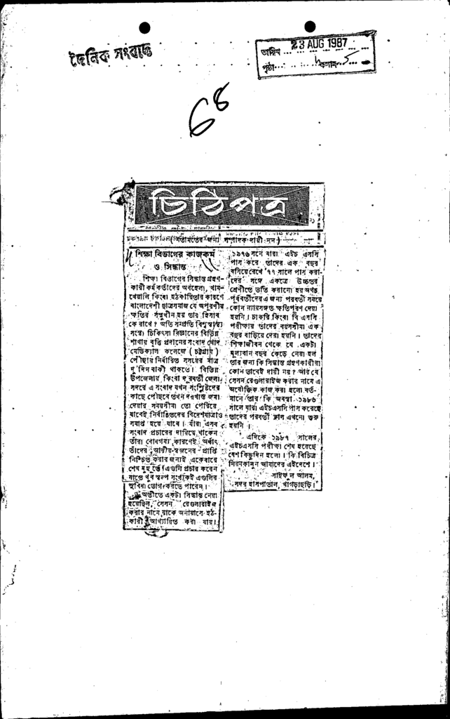 চিঠিপত্র Published on Newspaper দৈনিক ইত্তেফাক Category Personal Opinion / Discussion / Commentary Personal Speech / Discussion / Comentary Secondary and Higher Secondary Education Download
