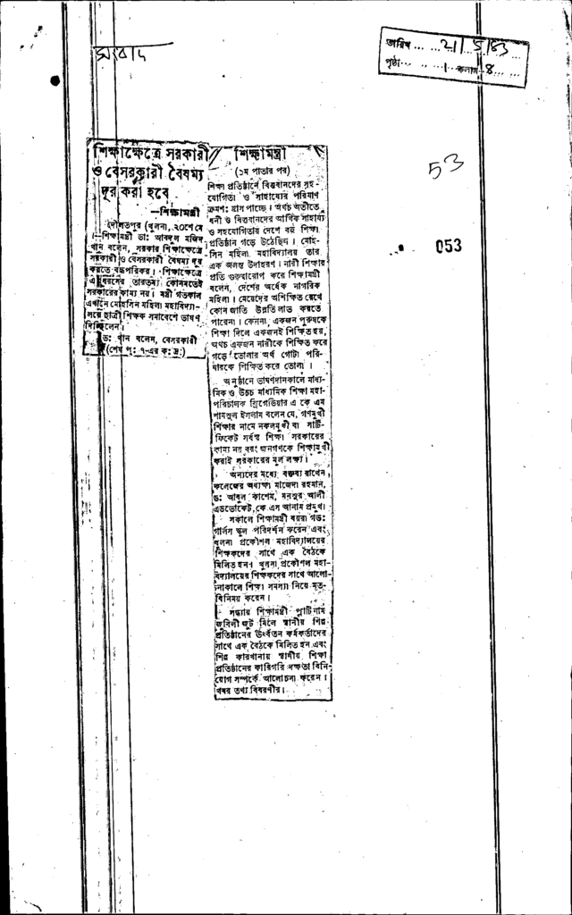 শিক্ষা ক্ষেত্রে সরকারী ও বেসরকারী বৈষম্য দূর করা হবে। Published on Newspaper দৈনিক সংবাদ Category Admission / Seat Problem Download