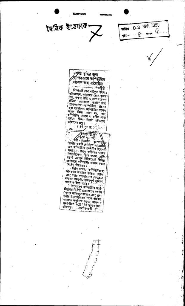 দক্ষতা বৃদ্ধির জন্য ব্যাপকহারে কম্পিউটার প্রচলন করা প্রয়োজন Published on Newspaper দৈনিক ইত্তেফাক Category Others Download