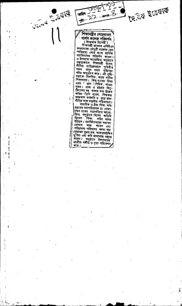 শিক্ষামন্ত্রীর শেরেবাংলা গার্লস কলেজ পরিদর্শন Published on Newspaper দৈনিক ইত্তেফাক Category Others Download