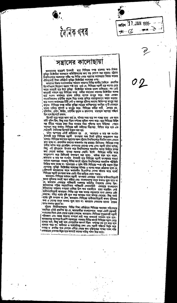 সন্ত্রাসের কালোছায়া Published on Newspaper দৈনিক খবর Category General Education General Education Download