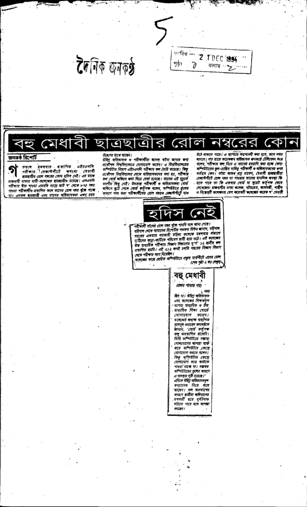 বহু মেধাবী ছাত্রছাত্রীর রোল নম্বরের কোনবহু মেধাবী ছাত্রছাত্রীর রোল নম্বরের কোন Published on Newspaper দৈনিক জনকণ্ঠ Category General Education General Education Download