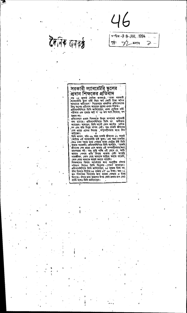 সরকারী ল্যাবরেটরি স্কুলের প্রধান শিক্ষকের প্রতিবাদ Published on Newspaper দৈনিক জনকণ্ঠ Category General Education General Education Download