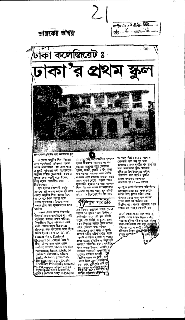ঢাকা র প্রথম স্কুল Published on Newspaper দৈনিক আজকের কাগজ Category General Education General Education Download