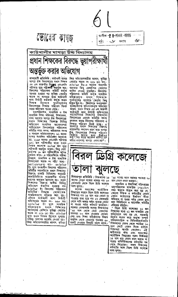 প্রধান শিক্ষকের বিরুদ্ধে ভুয়াপরীক্ষার্থী অন্তর্ভুক্ত করার অভিযোগ Published on Newspaper দৈনিক ভোরের কাগজ Category General Education General Education Download