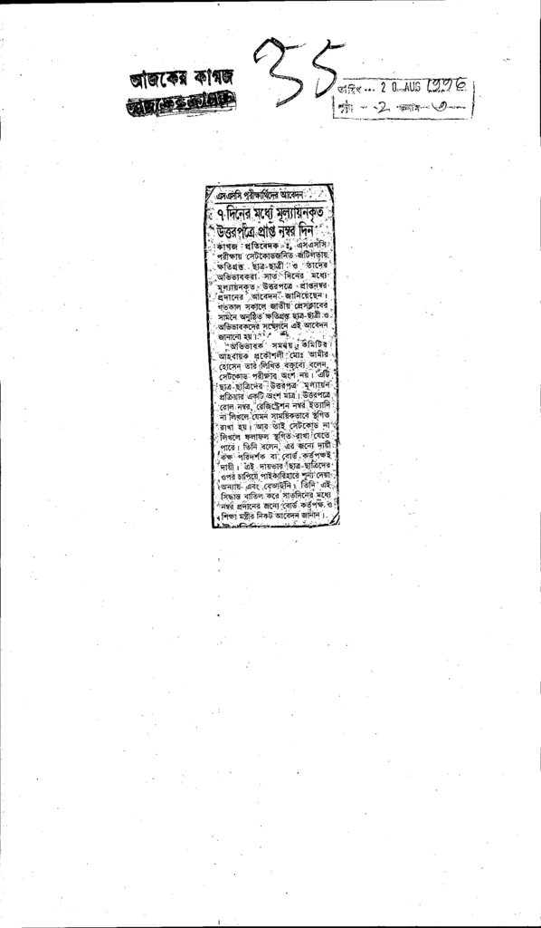 ৭দিনের মধ্যে মূল্যায়নকৃত উত্তরপত্রে প্রাপ্ত নম্বর দিন Published on Newspaper দৈনিক আজকের কাগজ Category General Education General Education Download