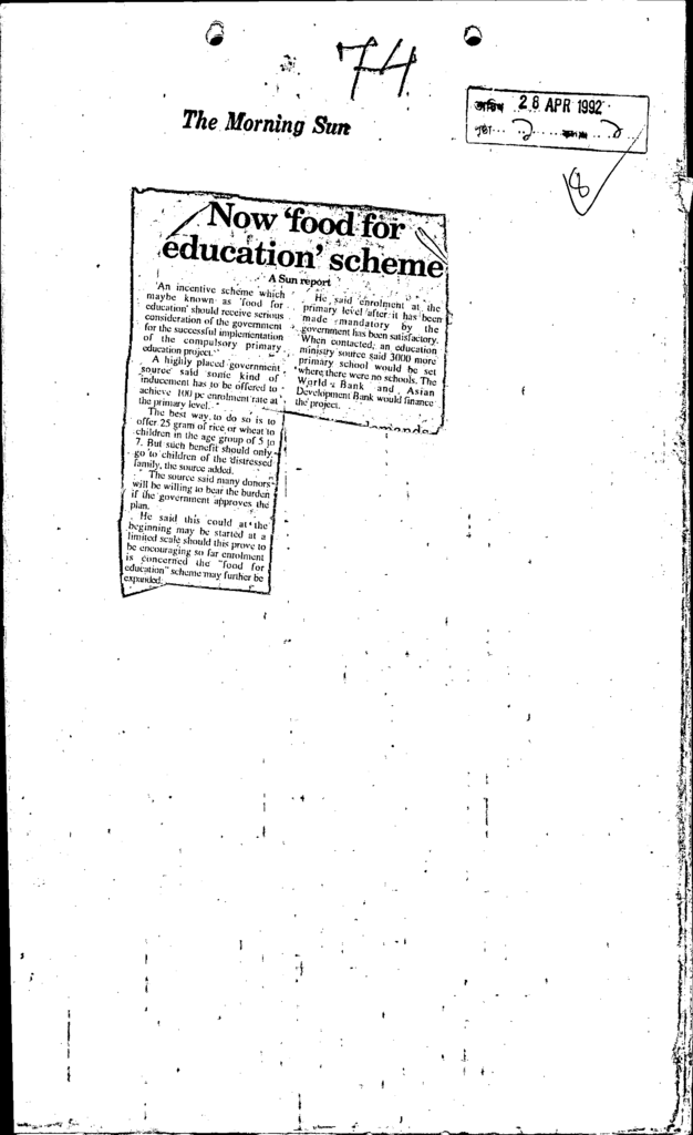 Now food for education scheme Published on Newspaper The morning sun Category Educational Ministry / Departments Education Ministry / Division / Directorate Download