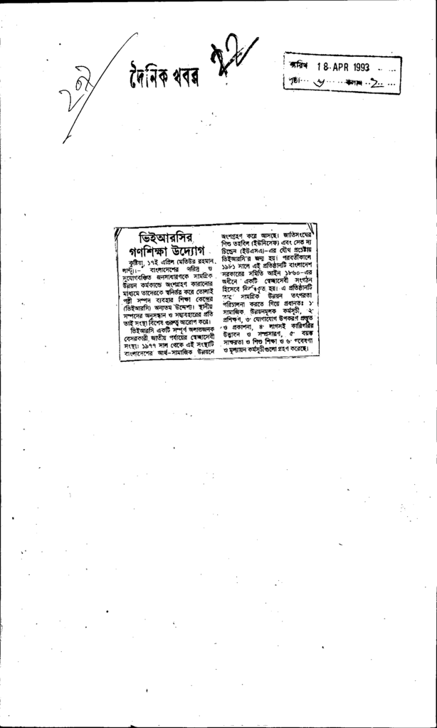 ভিইআরসির গণশিক্ষা উদ্যোগ Published on Newspaper দৈনিক খবর Category Educational Ministry / Departments Education Ministry / Division / Directorate Download