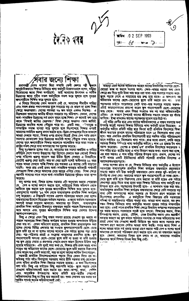 সবার জন্যে শিক্ষা Published on Newspaper দৈনিক খবর Category Educational Ministry / Departments Education Ministry / Division / Directorate Download