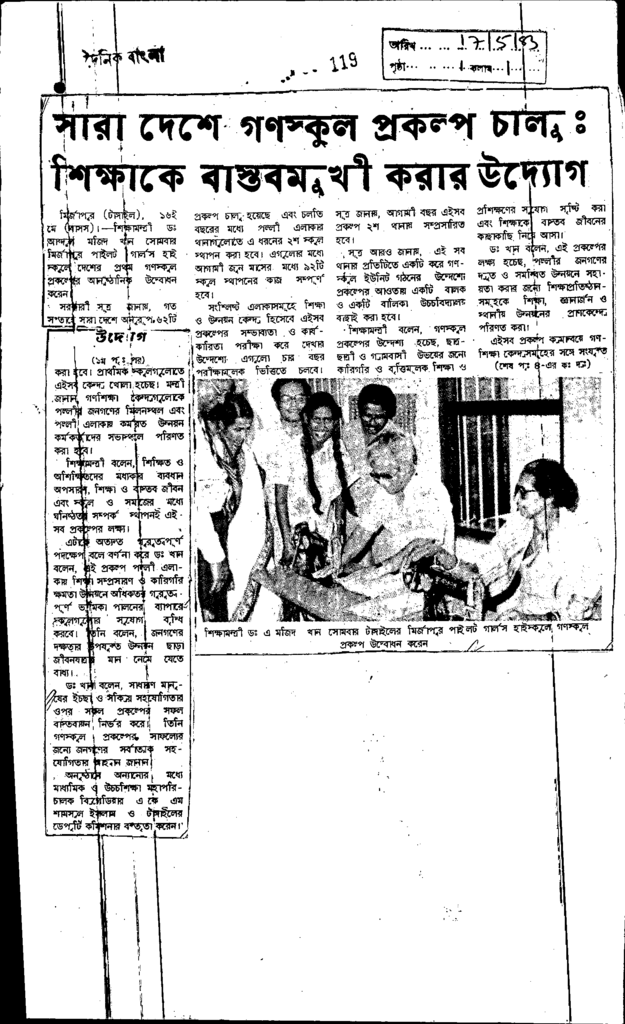 সারা দেশে গণস্কুল প্রকল্প চালু:শিক্ষাকে বাস্তবমুখী করার উদ্যোগ Published on Newspaper দৈনিক বাংলা Category Admission / Seat Problem Download