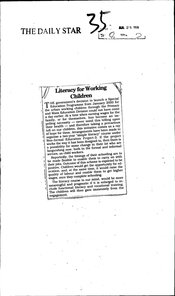 Literacy for working children Published on Newspaper The Daily Star Category Educational Ministry / Departments Education Ministry / Division / Directorate Download