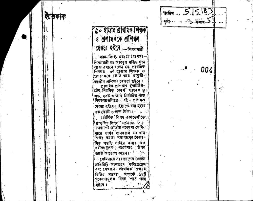 ৫০হাজার প্রাথমিক শিক্ষক ও প্রশাসককে প্রশিক্ষণ দেওয়া হইবে, শিক্ষামন্ত্রি Published on Newspaper দৈনিক ইত্তেফাক Category Admission / Seat Problem Download