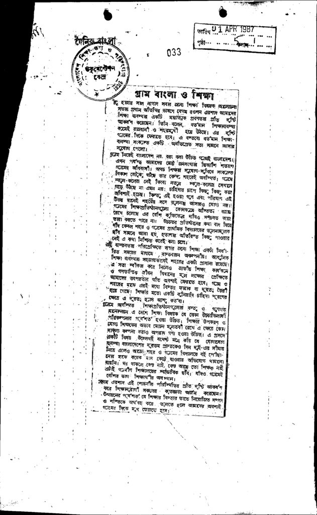 গ্রাম বাংলা ও শিক্ষা Published on Newspaper দৈনিক বাংলা Category Personal Opinion / Discussion / Commentary Download