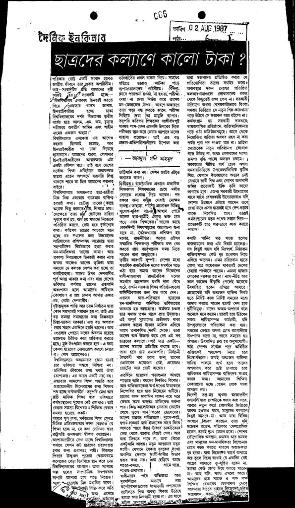 ছাত্রদের কল্যাণে কালো টাকা Published on Newspaper দৈনিক ইনকিলাব Category Personal Opinion / Discussion / Commentary Download