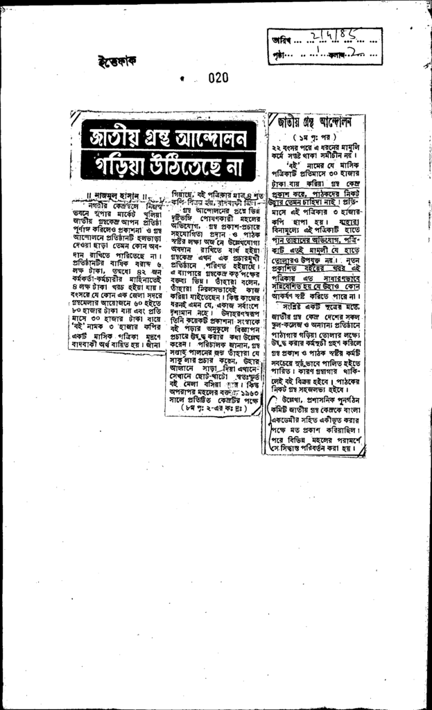 জাতীয় গ্রন্থ আন্দোলন গড়িয়া উঠিতেছে না Published on Newspaper দৈনিক ইত্তেফাক Category Admission / Seat Problem Download