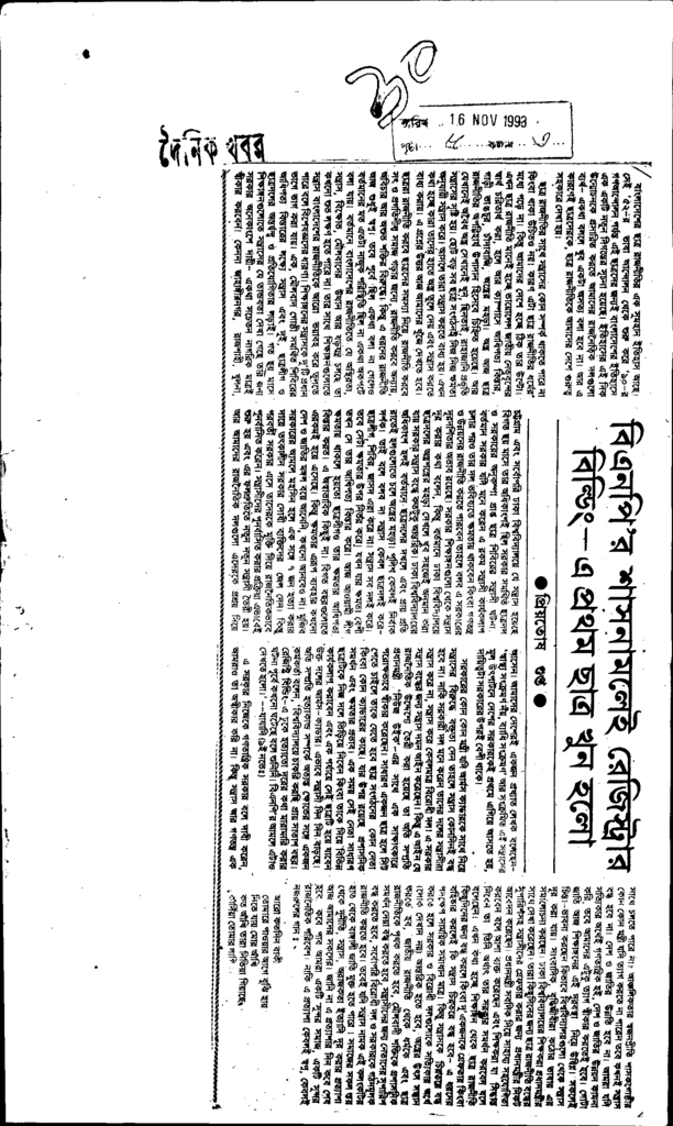 বিএনপি’র শাসনামলেই রেজিস্ট্রার বিল্ডিং- এ প্রথম ছাত্র খুন হলো Published on Newspaper দৈনিক খবর Category Personal Opinion / Discussion / Commentary Download