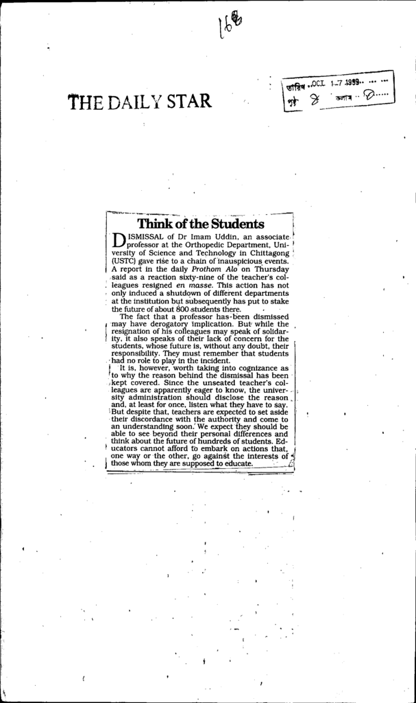 Think of the students Published on Newspaper The Daily Star Category Personal Opinion / Discussion / Commentary Download
