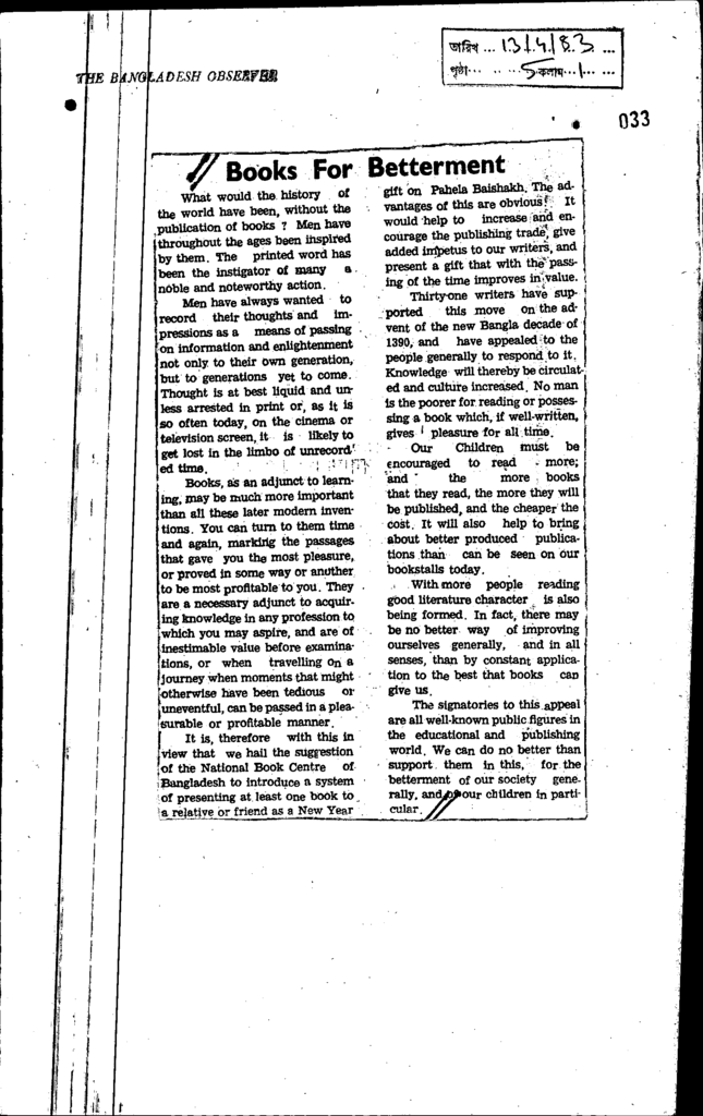 Books fro betterment Published on Newspaper The Bangladesh Observer Category Educational Ministry / Departments Education Board NCTB Education Ministry / Division / Directorate Download