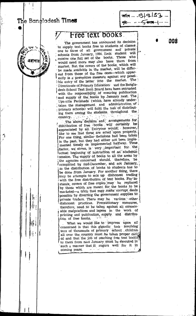 Free text books Published on Newspaper The Bangladesh Times Category Educational Ministry / Departments Education Board NCTB Education Ministry / Division / Directorate Download