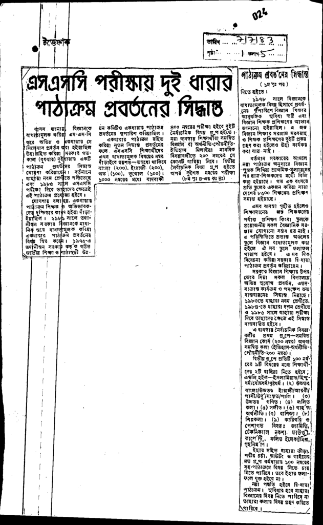 এসএসসি পরীক্ষায় দুই ধারার পাঠ্যক্রম প্রবর্তনের সিদ্ধান্ত Published on Newspaper দৈনিক ইত্তেফাক Category Educational Ministry / Departments Education Board NCTB Education Ministry / Division / Directorate Download