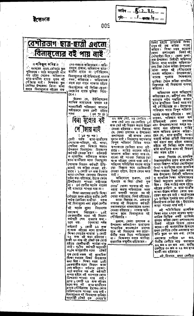 বেশীর ভাগ ছাত্র-ছাত্রী এখনো বিনামূল্যের বই পায় নাই Published on Newspaper দৈনিক ইত্তেফাক Category Educational Ministry / Departments Education Board NCTB Education Ministry / Division / Directorate Download