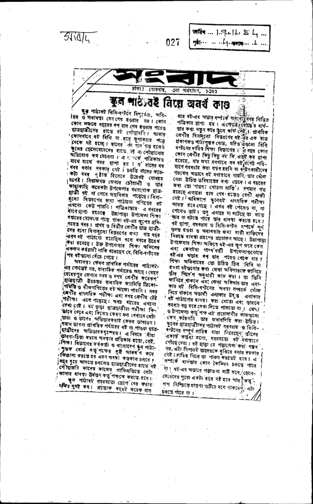 স্কুল পাঠ্রবই নিয়ে অনর্থ কান্ড Published on Newspaper দৈনিক সংবাদ Category Educational Ministry / Departments Education Board NCTB Education Ministry / Division / Directorate Download
