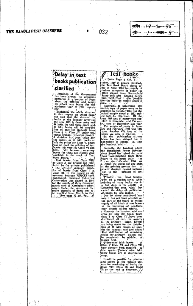 Delay in text books publication clarifled Published on Newspaper The Bangladesh Observer Category Educational Ministry / Departments Education Board NCTB Education Ministry / Division / Directorate Download