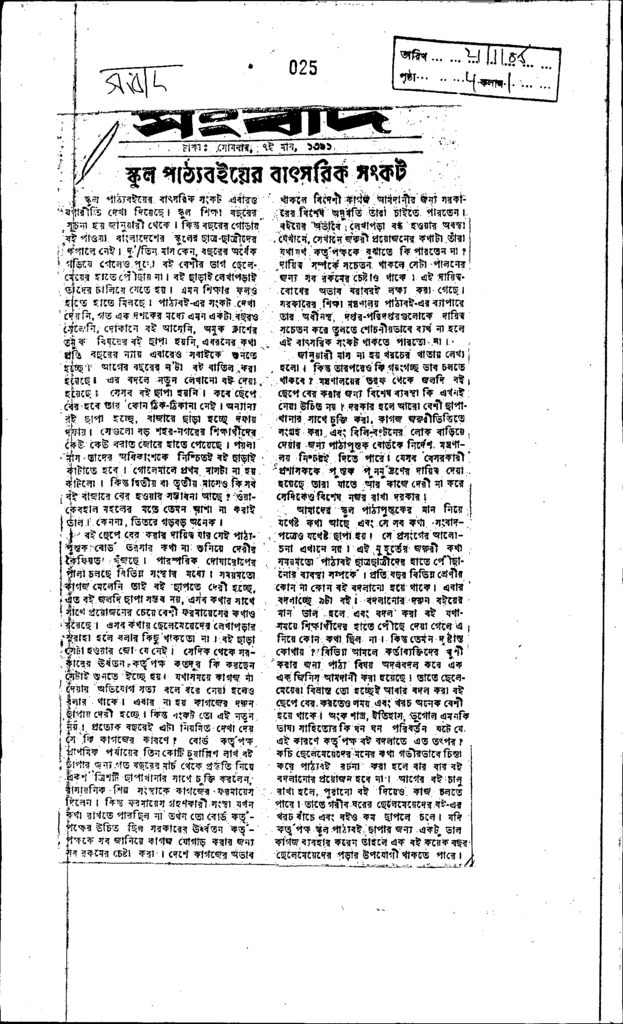 স্কুল পাঠ্যবেইয়ের বাৎসরিক সংকট Published on Newspaper দৈনিক সংবাদ Category Educational Ministry / Departments Education Board NCTB Education Ministry / Division / Directorate Download