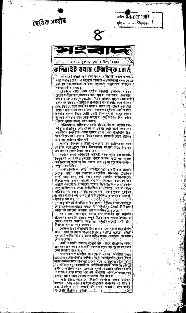 কপিরাইট বনাম টেক্সটবুক বোর্ড Published on Newspaper দৈনিক সংবাদ Category Educational Ministry / Departments Education Board NCTB Education Ministry / Division / Directorate Download