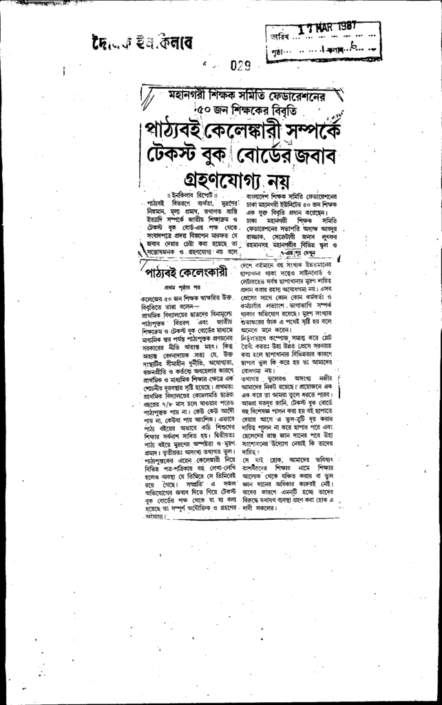 পাঠ্যবই কেলেঙ্কারী সম্পর্কে টেকস্ট বুক বোর্ডের জবাব গ্রহণযোগ্য নয় Published on Newspaper দৈনিক ইনকিলাব Category Educational Ministry / Departments Education Board NCTB Education Ministry / Division / Directorate Download