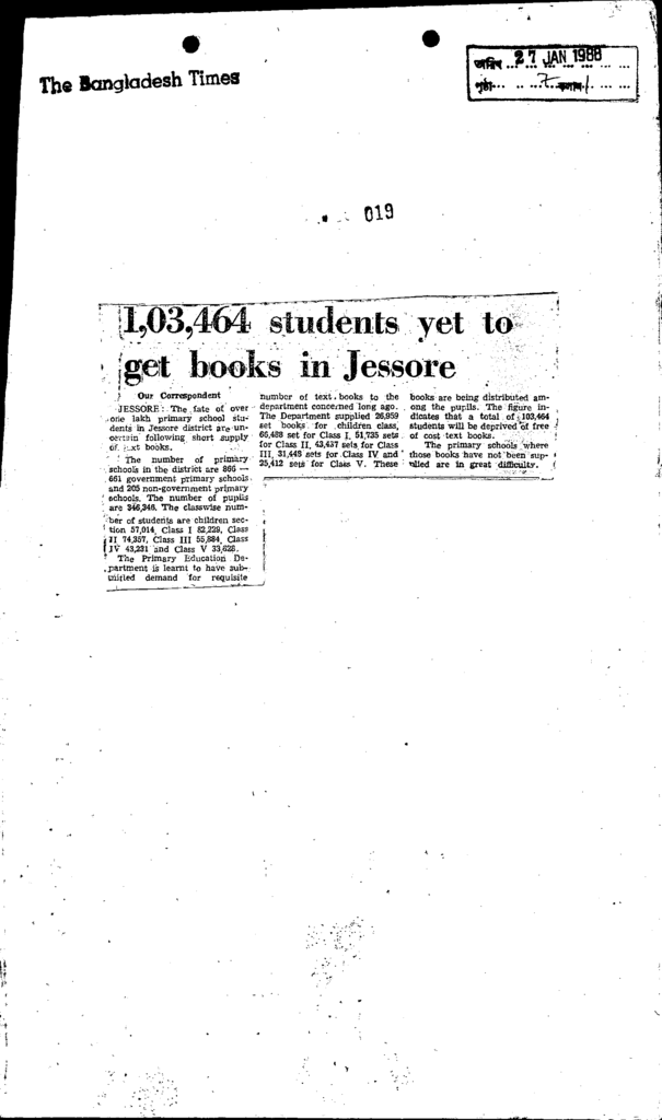 D1,03,464 students yet to get books in dessore Published on Newspaper The Bangladesh Times Category Educational Ministry / Departments Education Board NCTB Education Ministry / Division / Directorate Download