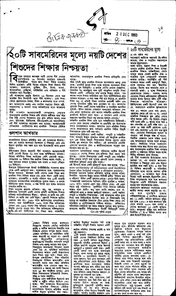 20টি সাবমেরিনের মূল্যে নয়টি দেশের শিশুদের শিক্ষার নিশ্চয়তা