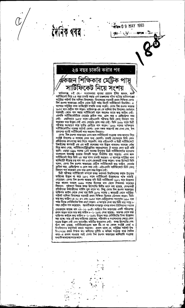 একজন শিক্ষিকার মেট্রিক পাস সার্টিফিকেট নিয়ে সংশয় Published on Newspaper দৈনিক খবর Category Educational Ministry / Departments Education Board NCTB Education Ministry / Division / Directorate Download