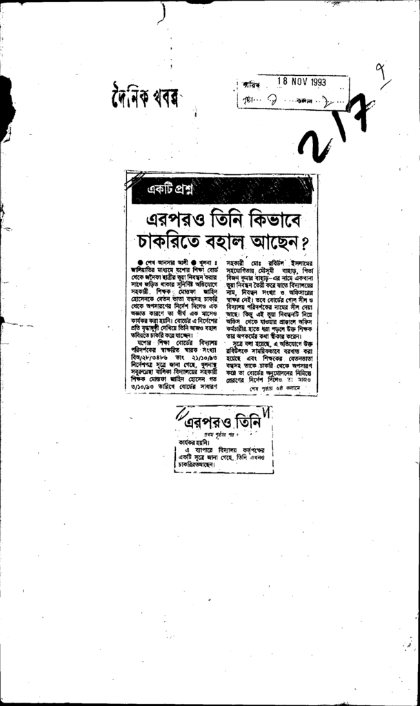 এরপরও তিনি কিভাবে চাকরিতে বহাল আছেন? Published on Newspaper দৈনিক খবর Category Educational Ministry / Departments Education Board NCTB Education Ministry / Division / Directorate Download