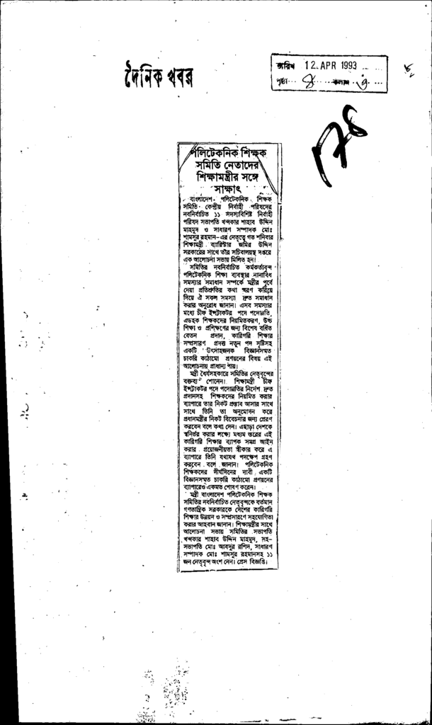 পলিটেকনিক শিক্ষক সমিতি নেতাদের শিক্ষামন্ত্রীর সঙ্গে সাক্ষাৎ Published on Newspaper দৈনিক খবর Category Educational Ministry / Departments Education Board NCTB Education Ministry / Division / Directorate Download