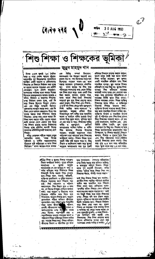 শিশু শিক্ষা ও শিক্ষকের ভূমিকা