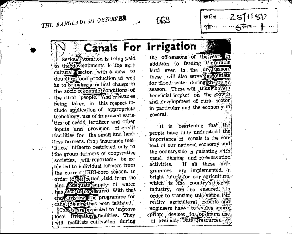 Canals for irrigtion Published on Newspaper The Bangladesh Observer Category General Education Download
