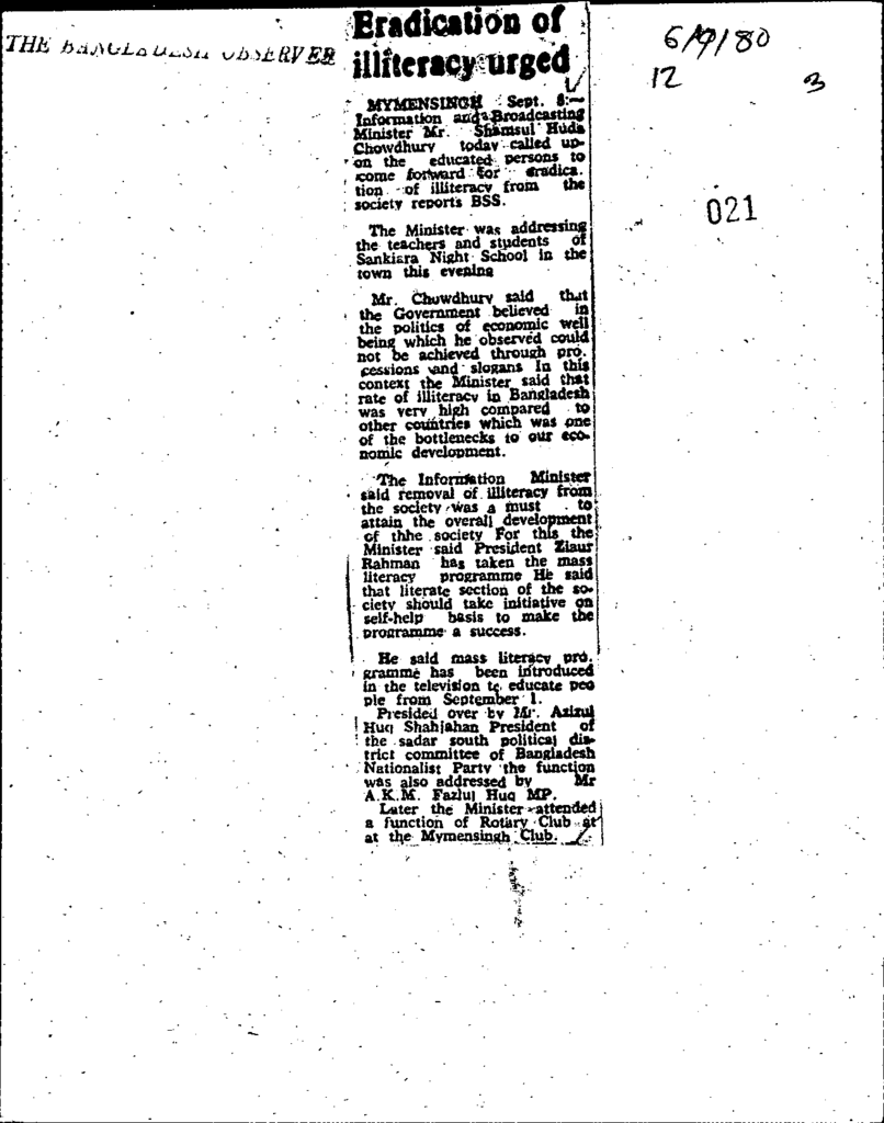 Eradication of illiteracy urged Published on Newspaper The Bangladesh Observer Category General Education Download