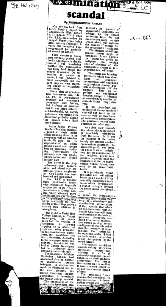 Examination scandal Published on Newspaper The Holiday Category Public Examination Public Examination SSC Download